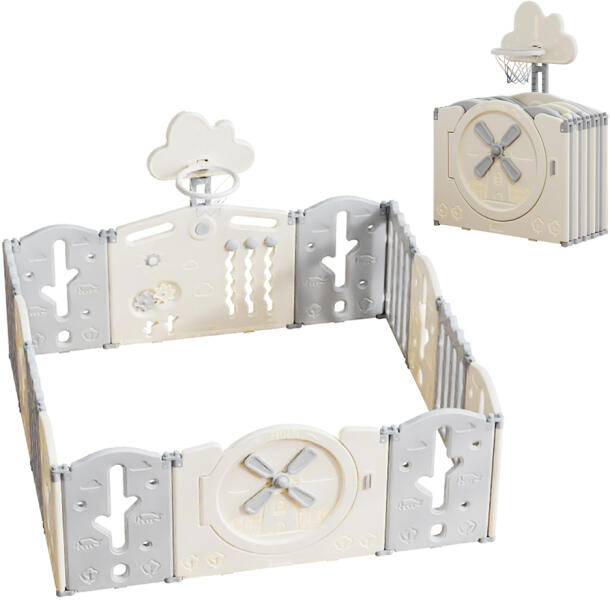 Az inSPORTline Bufalino műanyag biztonsági rács minden olyan kis kalandoroknak készült, akik nem tudnak egy helyben maradni! Ez a járóka nem csak egy biztonságos játszótér , hanem egy igazi, meglepetésekkel teli gyermekparadicsom . A gyermekek érzékszervi és motoros fejlődését elősegítő interaktív elemek mellett egy kosárlabdapalánk is található benne, ahol a kis sportol