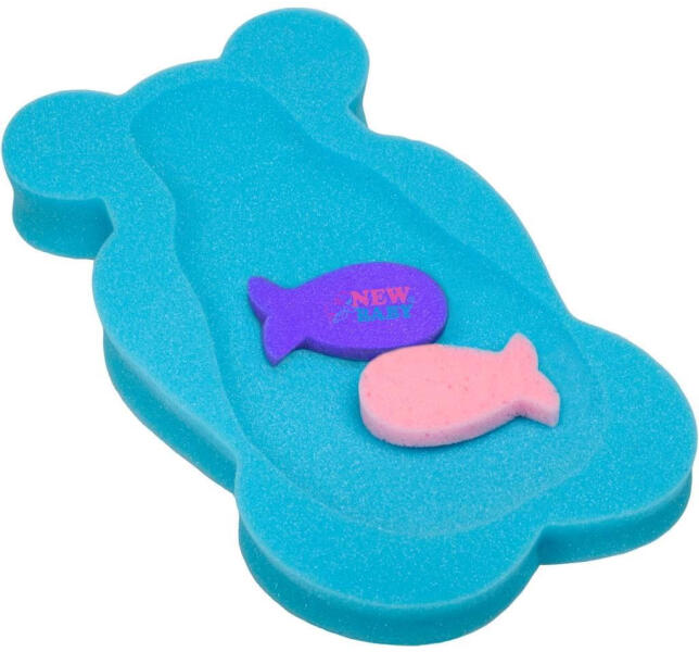 Hab alátét fürdésre New Baby kisbabának. Hossza kb 58 cm. Lehetővé teszi, hogy egyszerű és biztos legyen a fürdés. A csomagolásba 2 szivacs ingyenessen van. Magassága az alátétnek a kisbaba fejénél kb 8 cm és a lábánál kb 4 cm.