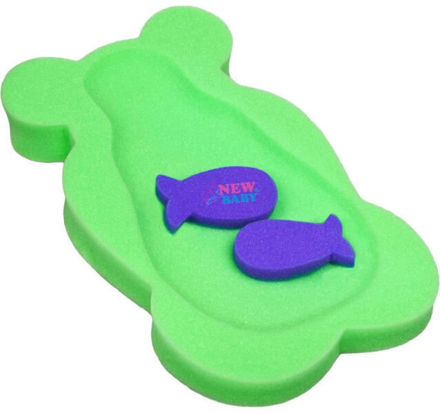 Hab alátét fürdésre New Baby kisbabának. Hossza kb 58 cm. Lehetővé teszi, hogy egyszerű és biztos legyen a fürdés. A csomagolásba 2 szivacs ingyenessen van. Magassága az alátétnek a kisbaba fejénél kb 8 cm és a lábánál kb 4 cm.