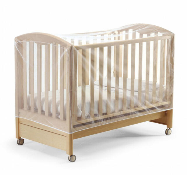 A rávarrott gumi széllel rögzíthető bármilyen 60x120-as kiságyra, így utazóágyhoz is használható. Anyaga: fehér tüll