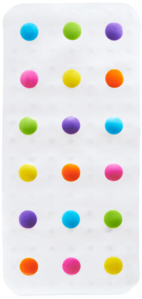 csúszásgátló fürdőalátét A Munchkin Dots csúszásgátló fürdőalátét számára a biztonság az első. A vidám színes dizájn texturált felülettel rendelkezik, amely megakadályozza, hogy a kicsik elcsússzanak vagy megcsússzanak fürdés közben, miközben az erőteljes tapadókorongok biztonságosan a helyén tartják a szőnyeget. Felhelyezés: Alaposan tisztítsd meg a fürdő