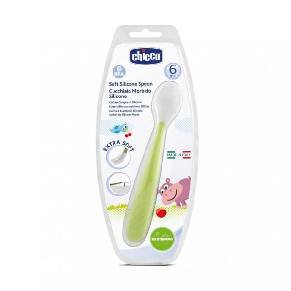 Chicco Szilikon kanál puha, hajlékony fejjel, zöld színben, a baba első etetéséhez. Fertőtleníthető, és akár a baba önálló étkezéseihez is ajánlott extra hajlékony kialakítása miatt. 6 hónapos kortól használható. 1 db-os kiszerelés. Sokszor már alig várjuk, hogy a babánk önállóan étkezhessen, ennek viszont az a veszélye, hogy a felnőtt étkezési eszközökkel me