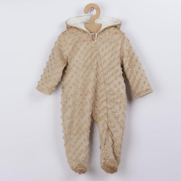 Praktikus kapucnis baba kezeslábas a Nicol Bubbles kollekcióból, kifejezetten kisbabák számára. Ez az overall nemcsak szép és meleg, hanem rendkívül praktikus is. Készült minka anyagból, amely kellemesen puha érzetet nyújt, jellemző kis kiemelkedésekkel. A cipzár teljes hosszában végigfut. A bélése pamut, ami a ruházat egyik legfontosabb eleme, hiszen növeli annak élettart