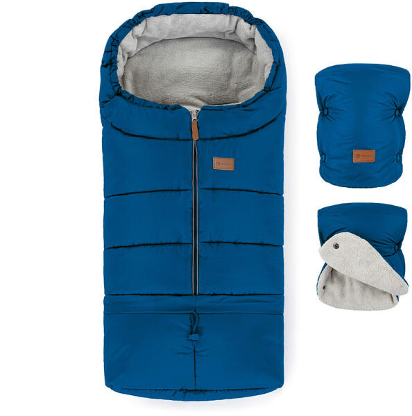 PETITE&MARS Téli szett Jibot 3in1 bundazsák + kézmelegítő kesztyű babakocsira Jasie Ocean Blue Teljes téli babakocsi felszerelés. Meleg meghosszabbítható bundazsák Jibot 3 in1 a babának és meleg Jasie kézmelegítő kesztyű a babakocsihoz az anyának. Mindegyik gyönyörűen összehangolt, egységes árnyalatban. A bundazsák jellemzői:- kényelmet és meleget biztosít a hideg