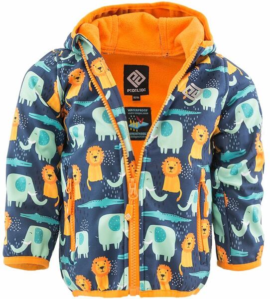 Gyermek funkcionális, rendkívül vízálló softshell dzseki fix kapucnival, Pidilidi, PD1103-02, fiú Gyermek funkcionális, rendkívül vízálló softshell kabát fix kapucnival, amely melegen tart és vízálló. A kabát elején 2 praktikus zsebbel rendelkezik. Az ujjak és a szegély elasztikus szegéllyel vannak ellátva. Elöl és hátul fényvisszaverő nyomtatással. Softshell (96% pol