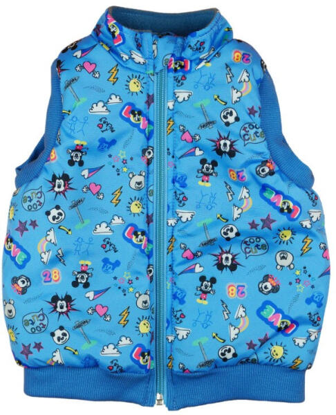 Egy igazi Disney rajongónak nem hiányozhat a gardróbjából ez a vidám, Mickey egér mintás pufi mellény! Kék alapon színes, figyelemfelkeltő Mickey minta díszíti, amely garantáltan mosolyt csal minden kisfiú arcára. A mellény elején található cipzárral könnyedén felvehető és levehető, így a reggeli készülődés sem lesz többé stresszes. Az ujjánál és a derekánál