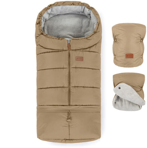 bundazsák és kézmelegítő kesztyű Teljes téli babakocsi felszerelés. Meleg meghosszabbítható bundazsák Jibot 3 in1 a babának és meleg Jasie kézmelegítö kesztyü a babakocsihoz az anyának. Mindegyik gyönyörüen összehangolt, egységes árnyalatban. A bundazsák jellemzöi: - kényelmet és meleget biztosít a hideg napokon, - vízálló kivitel véd a hótól és a szemerkélö e