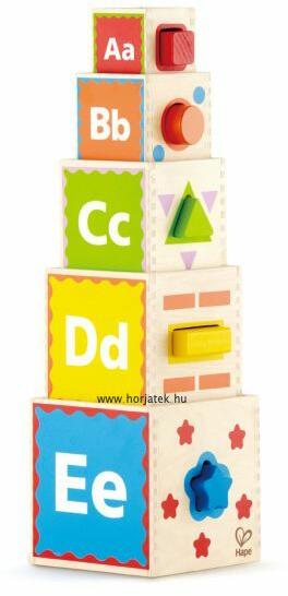 5 egymásba rakható kocka, betűkkel, számokkal, formákkal és színekkel!Tervezésének köszönhetően többféleképpen lehet vele játszani!Használata közben a következő készségek fejleszthetők: számolás, szín- és formafelismerés. Tartalma:5 db fa kocka5 db fa formabedobó elemA kockák oldalain: Formabedobó: kör ötszög, háromszög, téglalap, csillag. Kis- és nagybetűk: