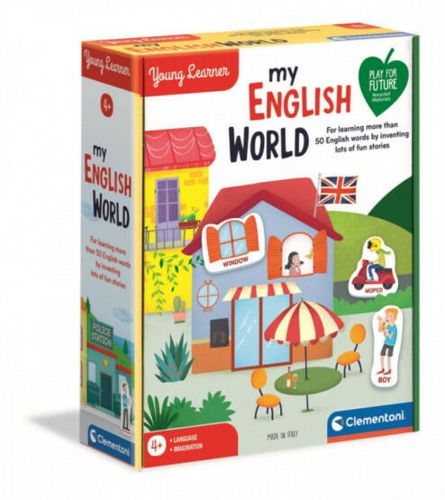A Clementoni Az első angol szavaim - oktató játékban a gyerekek játszva ismerkedhetnek meg az angol nyelv alapjaival. Ebben a szórakoztató játékban a különféle élőhelyeket, élettereket tartalmazó képekre kell beilleszteni a megfelelő tárgyakat, állatokat, melyen angol nyelvű felirat látható. Több, mint 50 angol szó vár felfedezésre, miközben gyermeke fejleszti a nyelvtu