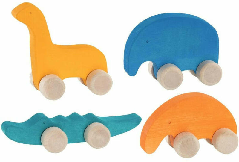 Egy elefánt vagy egy krokodil? Dinoszaurusz vagy zsiráf? Ez a négy guruló állat bármi lehet, amit a gyermek lát bennük. Meghatározatlan formáikkal serkentik a gyermekek szabad játékát és kreativitásra ösztönzik őket. Az enyhén érdesített tapintás és a tetszetős színkialakítás kiemeli egyedi jellegüket.