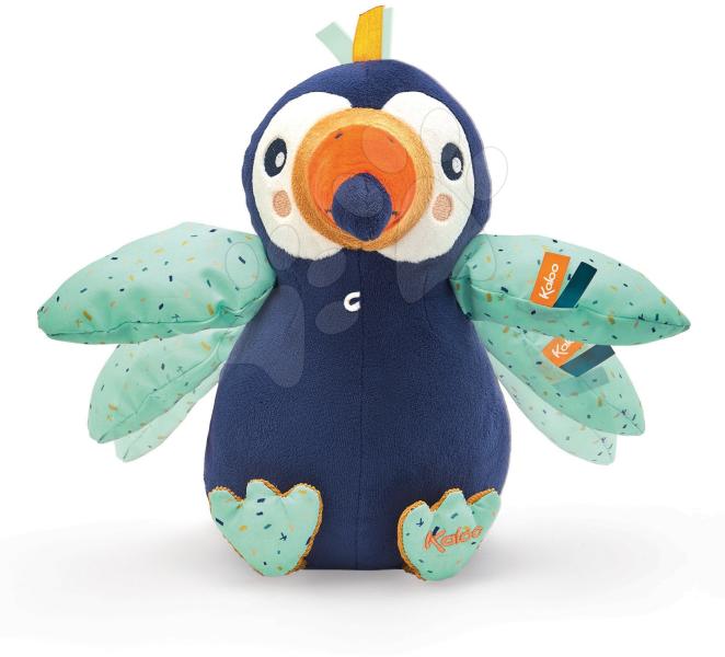 Aktív plüss Tukan Alban egy időtlen felfedező babajáték a francia Kaloo vállalat műhelyéből, amely felkelti a kicsi figyelmét és fejlesztően hat rá már a születés pillanatától fogva . Kék Tukán madár testének felülete pihe-puha plüss , tarka színkivitelezése elrabolja a legkisebbek szívét, akik fokozatosan megismerkednek az egyes színekkel köszönhetően kedvenc kis