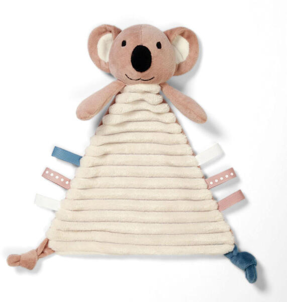 A Koala Charlie egy kendőcske és egy bújós játék kombinációja. Puha, plüss anyagból készült. Fejlesztési és érzékszervi tulajdonságokat kínál. A játék hosszú kezei és a színes címkéi segítik a babát a kézügyesség elsajátításában. A játék belsejéből halk csörgés hallatszik. Gyengéden serkenti a baba hallását és felkelti érdeklődését. A csomók, a nag