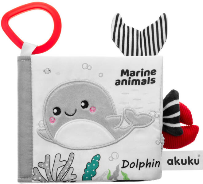 babakönyv Akuku babakönyv és rágóka - készségfejlesztő Kontrasztos szenzoros könyv nagyszerű játék a legkisebb gyerekek számára, akik még csak most fedezik fel a világot. Tele van meglepetésekkel, amelyek felkeltik a baba érdeklődését. A tapintásérzék serkentése hatással van gyermeke helyes és harmonikus fejlődésére. Különböző textúrájú és tulajdonságú anyag