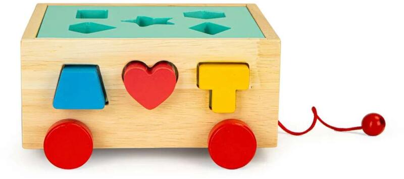 A húzható, kerekeken guruló fából készült kiskocsi oldalain különböző formákat tud gyermeked bedobálni, de minden alakzatnak külön helye van. Ugye, így már nem is olyan egyszerű? A fából készült alakzatok különböző, gyönyörű élénk színnel festettek így biztosan nagyon tetszenek majd gyermekednek. A játék segítségével könnyen megtaníthatod neki a formákat é