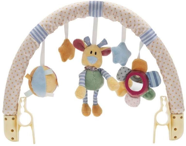 Plüss játékhídKiváló minőségű anyagokból készült termék. Különleges formája segíti a megfelelő fejlődést és a játékkal könnyen megtanulhatja a gyermek a formák világát. Segíti a babát a szellemi és fizikai mozgékonyság fejlesztésében. A játékhídat a rugalmas műanyag csatoknak köszönhetően nagyobb babakocsihoz vagy autósüléshez is csatlakoztathatod. A vid