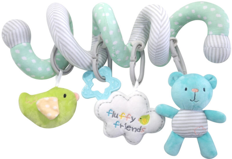 Bergon spirál játék Kiváló minőségű plüss és műanyag anyagokból készült. Különleges formatervezés, amely segíti a babák megfelelő fejlődését. Fejleszti a gyermek szellemi és fizikai mozgékonyságát. Vidám, élénk színek, amelyek játékra ösztönzik a kicsiket. Újszülött kortól ajánlott. Könnyen rögzíthető kiságyra, babakocsira és autósülésre. Mérete: 3