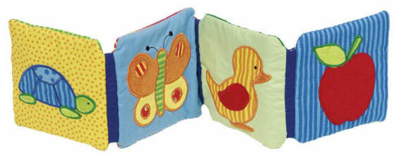 Nyolc oldalas csörgő képeskönyv babáknak, melynek minden oldalán különböző színes figura található. Mérete: 13 x 12,3 cm. Az Európai előírásoknak megfelelő termék, CE minősítéssel.