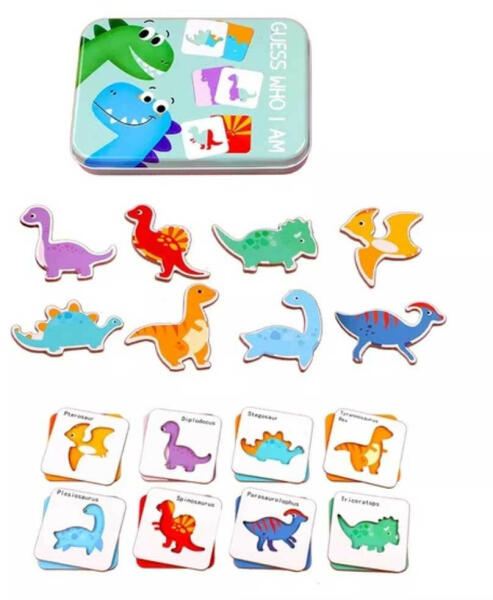 Ki vagyok én? Párosító játék Kivitel: Dínó Tartalma: 8 db dinó puzzle, 8 db körvonal puzzle, 8 db 2 oldalas ábra puzzle, 1 fém tároló doboz Tároló doboz mérete : 17 x 12 cm x 3 cm Puzzle kártyák mérete: 6,8 x 6,8 mm x 4 mm Anyaga: Farost Ki vagyok én párosító játék - Dínó Kiváló minőségű 4 mm vastag farostból készült puzze játék egy praktikus fém dobozban, me