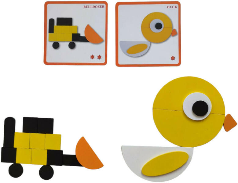 Logikai rejtvény játék – Állatok geometriai alakjai Anyaga: fa Tartalma: 65 db geometria alakzat fából, 20 db 2 oldalas kártya Doboz mérete: 26,5 x 18,3 x 4,3 cm Ajánlott életkor: 3+ Fa logikai játék- ÁLLATOK GEOMETRIAI ALAKJAI Ez a kiváló minőségű fából készült geometriai alakzatokból álló állatos puzzle játék tökéletes választás a kisebb gyermekek számára. A s