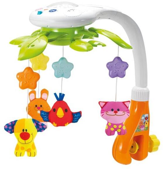Az Állatos zenélő kiságyforgó bébijáték egy műanyagból készült forgó, amit könnyen fel lehet erősíteni a babaágy rácsaira. A játékról cica, kutya, madár és nyuszi lóg, különféle textilekből. Kellemes dallamokkal nyugtatja a babát, és segít az elalvásban is. 2 darab AA ceruzaelemmel működik, a csomagolás az elemeket nem tartalmazza. >Winfun Életkor:0 - 3 éves
