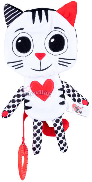 Az imádnivaló cica kontrasztos színei, és a különböző textúrák serkentik a babák látását, tapintását és hallását. Az állatkához erősített rágóka segíti a fogzást. A pihe-puha kialakítás által teljesen biztonságos a legkisebbek számára is. Jellemzők: Újszülött kortól ajánlott Érzékszervi fejlesztés: A különböző textúrák és élénk színek serkentik a