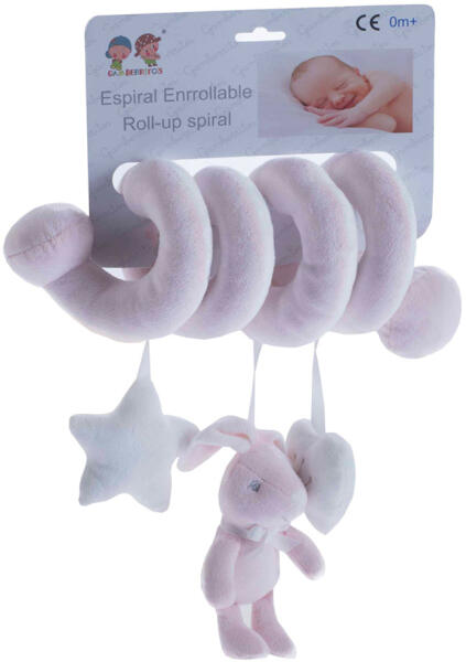 Gamberritos játékspirál plüss nyuszi rózsaszín 10775 Ez a puha játékspirál szórakoztató tevékenységekkel ideális játszótárs babája számára. A különböző játékok csábításra hívják a babát, és több órányi játékidőt biztosítanak. Ez serkenti a baba fogási reflexét és hallásérzékelését. A játékspirál egyszerűen rögzíthető kiságyra, járókára vag