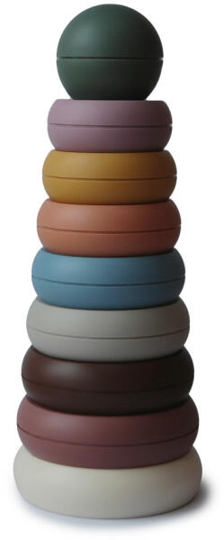 Játssz, alkoss, építs a dán Hygge-kollekció elemeiből! A retro színekben pompázó gyűrű piramis fejleszti a baba gondolkodását, problémamegoldó készségét, továbbá kézügyesség fejlesztő hatása hozzájárul az írástanuláshoz. A MUSHIE gyűrű piramis 7 különböző színű elemből álló készségfejlesztő játék.