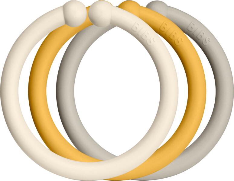 Praktikus és játékos kiegészítő Határ a csillagos ég a BIBS karikákkal!A kiegészítő cumik és rágókák rögzítésére alkalmas akár otthon a kiságyban, akár útközben a babakocsiban, autóban. Ötletes fejlesztő játék is - készíts láncot belőlük ízlésed szerint!A BIBS karikák tökéletes kreatív kiegészítők a mindennapokra!A krémfehér, méz és homok színben po