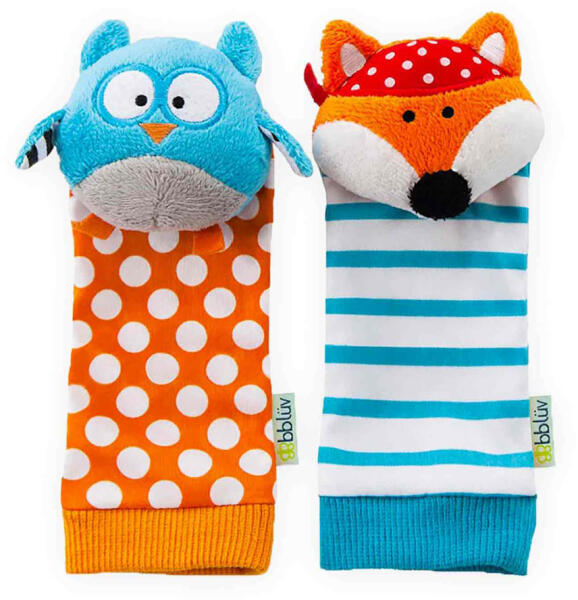 Zokni csörgő szett. Bblüv Duö zokni csörgő segíthet a babáknak stimulálni a hallásban és a finom motoros fejlődésben színes, mintás anyagból készültek szuper aranyosak bábozásra is használható újszülött kortól mosógépben kímélő programmal mosható