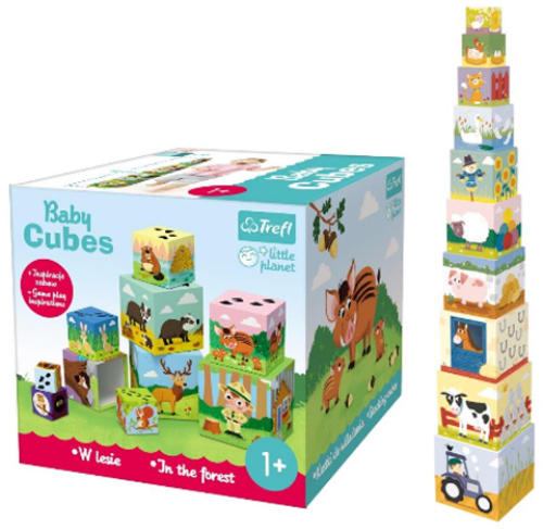 Bébi kocka - Az erdőben - Trefl Hivatalos magyarországi forgalmazótól. Leírás: A Bébikocka készségfejlesztő játék szettben 10 db kockát találhatsz melyek más-más történetet mesélnek el az erdő élővilágáról. A szettben található legnagyobb kocka 13 x 13 x 13 cm-es, a legkisebb pedig ami a torony tetejére kerül 4 x 4 x 4 cm. A torony összeépített magassága 86 cm ame