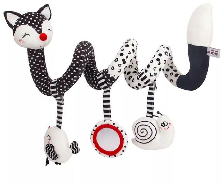 A több különböző részből álló plüss spirál játék babakocsira , autóülésre és gyermekágyba is kíválóan alkalmas készségfejlesztő játék, amely biztosítja a mókát gyermek számára hosszabb ideig. A puha plüss anyaga és a kontrasztos színek stimulálják a gyermek érzékeit és rendkívül érdekes a gyermek számára. A levehető, csipogó madárka és puha csörgős