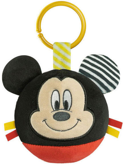 Disney Mickey plüss labdafigura, baba csörgő Clementoni Disney Mickey plüss labdafigura, baba csörgő Méret: kb 11 cm - Puha, plüss anyag -Zizegő és csörgő hangokat ad - Az akasztó fül segítségével játszószőnyegre, babakocsira, hordozóra is könnyedén rögzíthető. - 3 hónapos kortól