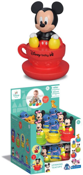 A Clementoni Baby: Disney Baby pörgethető karakter figurák izgalmas és vidám szórakozást nyújtanak a legkisebbek számára!A négy népszerű Disney szereplő – Mickey, Minnie, Stitch és Simba – színes teáscsészékben ülve várják, hogy a gyermekek megpörgessék őket. Ezek a cuki figurák az ikonikus Disney Tea Cup körhinta élményét idézik, ami egy jól ismert kedvenc a gy