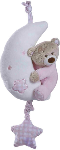 Gamberritos felhúzós zenélő játék plüss maci holdon rózsaszín 9829 Gyermeked imádni fogja ezt a félholdon csücsülő macit mert ha alul meghúzod a csillagot akkor egy gyönyörű dallamot hallhatsz a baba szórakoztatására és pihentetésére. Ez a zenélő plüss anyagból készült, amely nagyon puha és kellemes tapintású. Segíti a motoros készségek, a képzelet, az önkifej