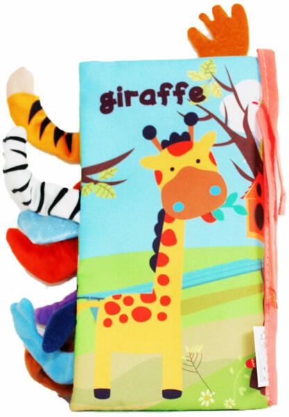 Farkinca lapozós textil babakönyv vadállatokkal. Különböző vadálatokkal ismerkedhetnek a gyerekek, ha ezt a puha textil könyvet lapozgatják. Tigris, zebra, zsiráf és szarvas is a van az állatok között, amik mindegyikének kilóg egy-egy testrésze a kö...