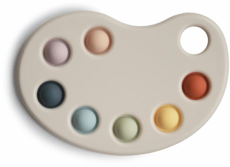 Készségfejlesztő pop játék A festőpaletta formájú nyomkodós játék hasonlít a pop it! játékokhoz. A kicsi kezekbe illeszkedő játék fejleszti a kézügyességet és a finommotorikai készségeket. Az élelmiszeripari szilikonból készült gombok, és a BPA-mentes műanyag keret lágy színei szemet gyönyörködtetőek. A CE-tanúsítvánnyal ellátott játék 10 hónapos kortól a
