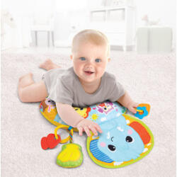 Puha és strapabíró támasztópárna hasi pihenéshez és felüléshez. -A dzsungel pocakpárna stabilan és kényelmesen tartja a kisbabát, miközben fejlődnek a motoros mozgási képességei. -Félhold alakú, hogy támogassa a fejlődő babát. -Az egyszerűen megnyomható gomb vidám dallamokat játszik le. -Barátságos arcú elefánt kedves hangokkal. -Bababiztos, fogzó baba ínyének m