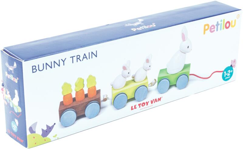 Le Toy Van Vonat nyuszikkal húzójáték Most jön a nyuszi vonat. Az anya, a 2 csecsemő és a 3 sárgarépa felszállt a vonatra. Ez a varázslatos érzékszervi játék ösztönzi az alapvető számlálást, valamint a kéz-szem koordinációt és ügyességet. A termék vizes alapú festékkel van színezve, tesztelve és biztonságos a kicsik számára, a vonat ideális 12 hónapos gyermekek
