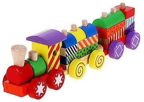 A mintás kis vonatot a gyerekek bármikor szétszedhetik és összerakhatják, így a mozdony tologatásán kívül egy kis kreatív építőjátékot is játszhatnak. A mintás fa vonat elemeit a rudakra kell felhúzni, így az mozgás közben nem esik szét vagy dől le. A mozdony és a vasúti kocsik összekapcsolhatóak, így hosszú szerelvénnyel még izgalmasabb a játék. A készségfejle