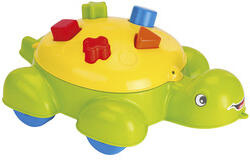 Teknős alakú formaválogató a DOLU-tól. Segíti gyermeke kéz-szemkoordinációját és alakfelismerését. A teknősnek kerekei vannak, így lehet tolni. 10 darab formát tartalmaz, amiket a megfelelő lukba illesztve bele tud dobni a gyerkőc a békába. Ajánlott életkor: 12 hónapos kortól A termék mérete: 13,5x39x25,5 cm.