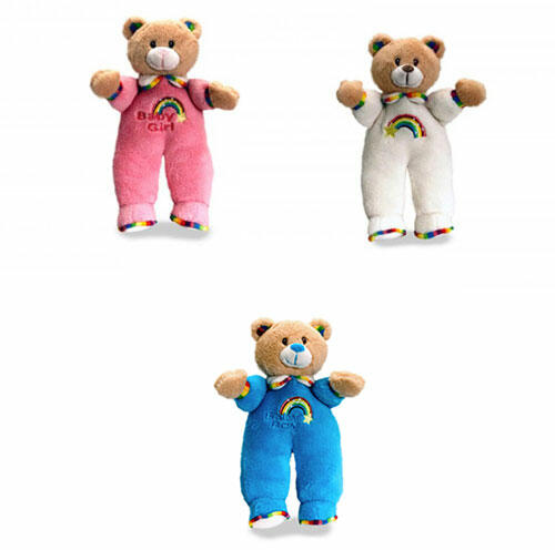 Kedves plüss mackó, szivárványos plüss maci álló 18cm-es.