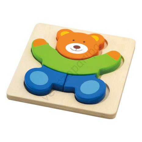 RAKTÁRRÓL AZONNAL! Maci formát ábrázoló puzzle magasított kivitelben. Alapanyagát tekintve fából készült, a használt festékanyag nem tartalmaz egészségre káros anyagokat, így az teljesen biztonságos a kisgyermekek számára is. Magasított kivitelének köszönhetően könnyen kézbe tudják venni a kisgyerekek. Kimondottan népszerű fejlesztő játék, mivel számos területen