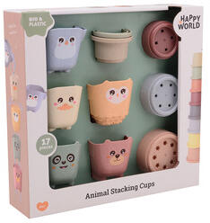 Happy World bio műanyag toronyépítő és vördöcskék Fedezze fel a Happy World fürdőpoharak és egymásra rakható vödrök készletét, amelyek környezetbarát bioműanyagból készültek, hogy a fürdési idő játékos és tanulságos legyen. A szett tartalmazza a vödrök praktikus tapadókorongjait is, így könnyedén rögzíthetők a csempére vagy a kád oldalára, növelve ezzel a