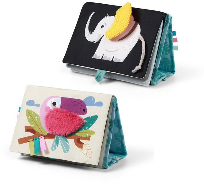 Fedezze fel a varázslatos Safari könyvet! A speciális alap lehetővé teszi, hogy a könyvet bármilyen lapos felületre helyezze. Arra is ösztönzi a babát, hogy a hasán töltsön időt és felemelje a fejét, ezzel a nyaki és feji izmokat erősítve. Két lapok egyik oldala fekete-fehér, másik színes. A szafari elemeknek köszönhetően a baba beléphet a vadon élő állatok és a kal