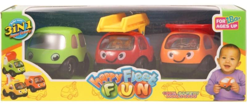 A Happy Fleet bébiautó 3 darabos készlet buborék formájú műanyag kisautókat rejt magában Az autók mérete: 8 cm. > 18 hónapos kortól
