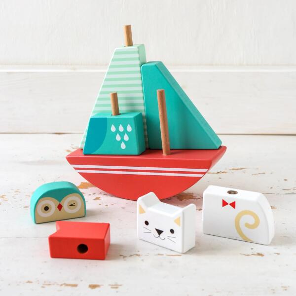 Légy minél óvatosabb és ügyesebb és ültesd a baglyot és a cicát a billegő vitorláshajóra! Fa ügyességi építűjáték 12 hónapos kortól.