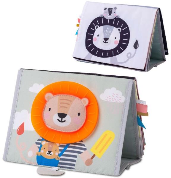 Taf Toys Tummy-Time Szavanna puha bébikönyv. Egy újszülött kortól használható puha babakönyv a Szavanna kollekcióból zizegő töltettel, nagy bababiztos tükörrel, 3D tevékenységekkel, különböző felületekkel és puha rágókával. PUHA BABAKÖNYV két oldallal a két fejlődési szakaszhoz és zizegő töltettel. Segít megtanítani az ok-okozatot, amikor a baba a gyűrögeti a