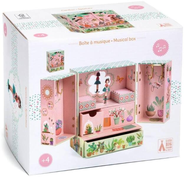 Mit kell tudni a játékról? Zenélő ékszerdoboz - Djeco Secret garden Titkos kertet megidéző csodaszép mesedoboz, mini gardrób szekrény, melyben minden kincsnek jut hely. Igényes kivitelezésének, és gyönyörű motívumainak köszönhetően a gyermekszoba csodás díszeként is megállja a helyét. A zenedoboz ajtaját kinyitva egy csodaország tárul a leányzók szeme elé, miközbe