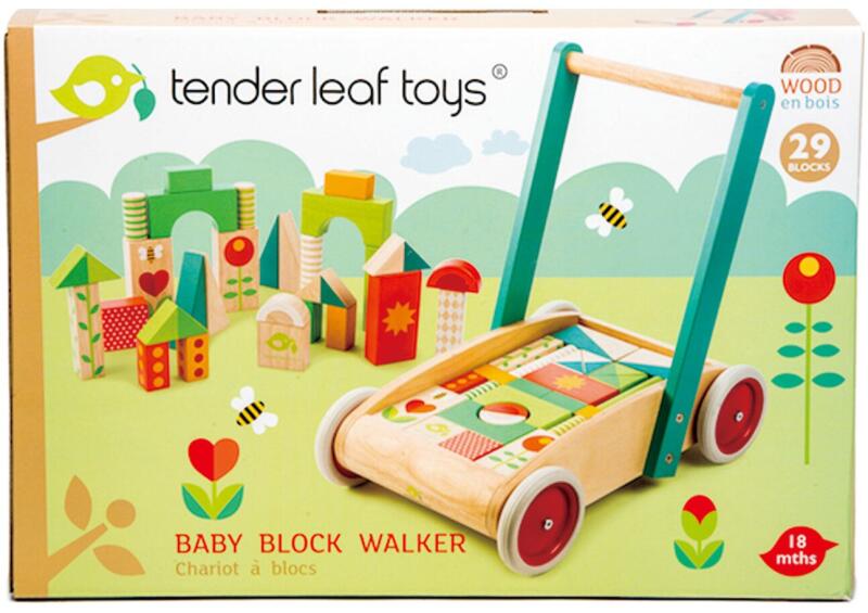 Tender Leaf Toys Fa járássegítő kockákkal, 29 darab Fa járássegítő kockákkal Baby Block Walker egy tökéletes gyerekjáték és mozgási segédeszköz egyben, melytől gyerkőce 18 hónapos korától el sem fog akarni szakadni. Egyedi járássegítő a Tender Leaf Toys márka elsőrangú tervezői kezemunkája egyenesen Nagy-Britanniából. A zöld járássegítő 29 kockával csodaszé