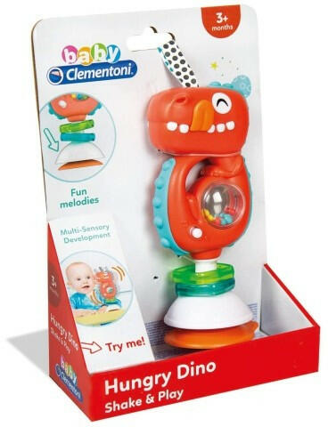 Kisbabádnak egy különleges játékot hoztunk el, mely biztosan tetszeni fog majd neki, hiszen egy aranyos dinoszauruszos csörgő lehet az övé, mely nem egy egyszerű csörgő. A dinoszauruszt fel lehet állítani egy tapadókorong segítségével, majd ezután megmozgatva ide-oda dől, a pocakjában lévő golyók pedig csörögni kezdenek, ez mozgásra ösztönzi gyermekedet, segít fejlesz